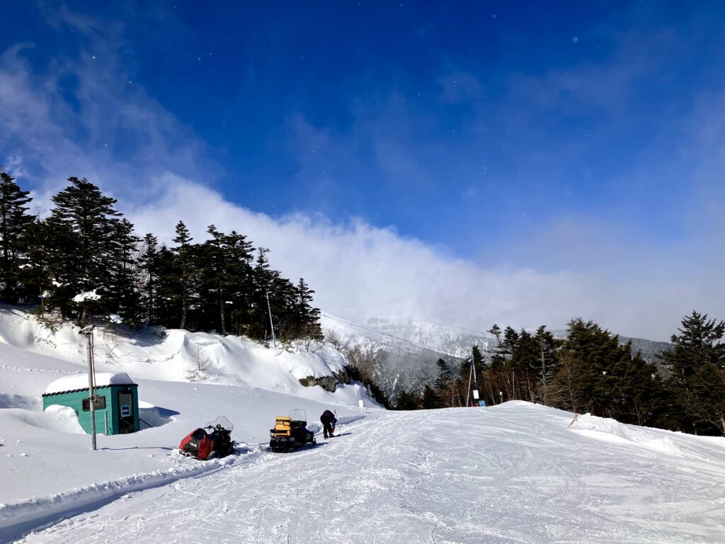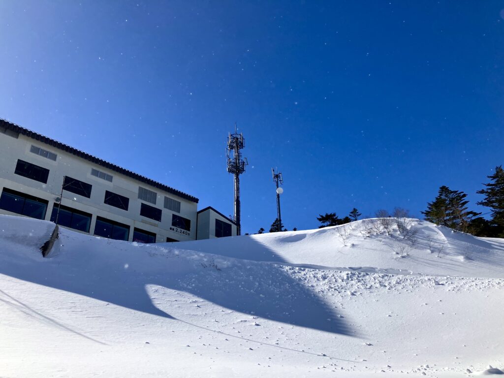 話は戻ってここは頂上が標高2240m、日本のゲレンデ標高ランキングだと2位、麓のセンターハウスで1500m越えてて、肌が痛い寒さ。